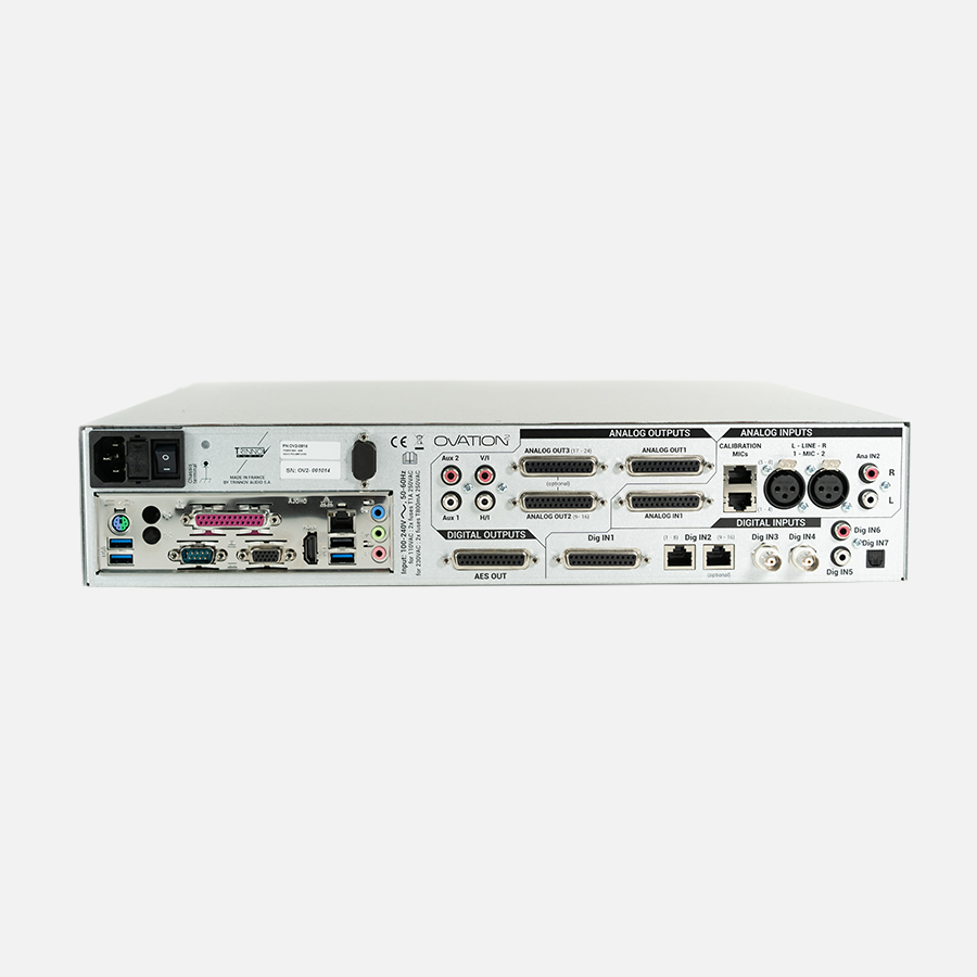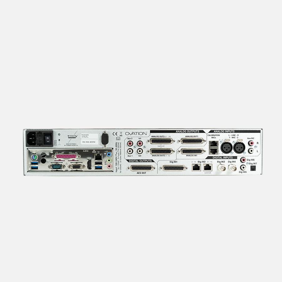 Digital and analog outputs: The new Ovation 16/16 version proposes up to 16 channels AES outputs mirroring its analog outputs. With this feature, you can now use an amplifier with digital inputs as well as analog inputs.